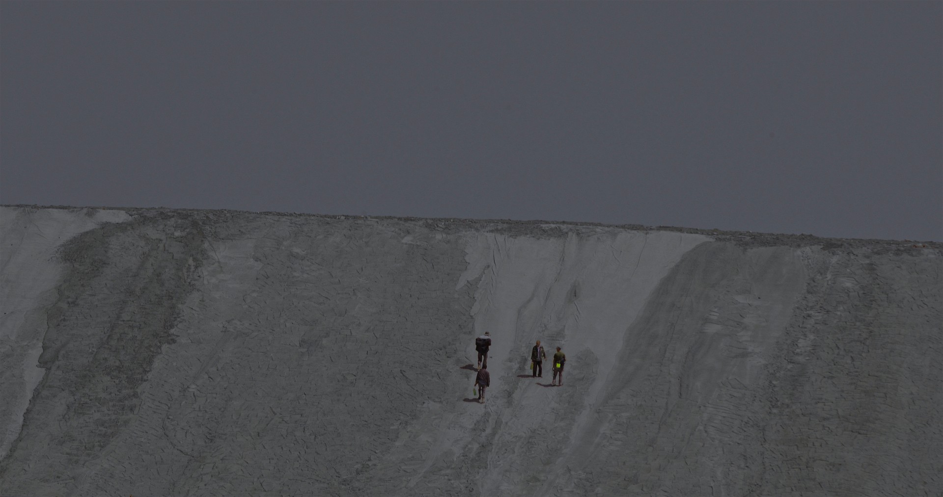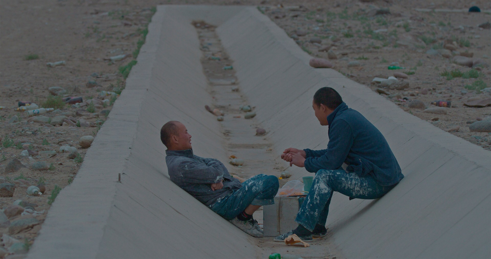اینجا نه از راوی خبری هست، و نه از گفتگوهای طراحیشده. هیچ راهنما یا الگوی مشخصی در کار نیست. همه چیز معلق و سرابگونه است، سرابی از گمانها. و برداشتهایی که به آنی به اشتباه میافتند. اشتباهی که هر لحظه کنجکاومان میکند. اینکه اینجا کجاست؟ از صداهای دور و مبهم آدمها چیزی دستگیرمان نمیشود. فیلم عامدانه خسّت به خرج میدهد. شاید هم هدف چیز دیگری است. فهمیدهایم که با یک مستند متعارف طرف نیستیم. اینجا موضوع آگاهانه به عقب رانده شده. به موجودی بیجان و از ریختافتاده بدل شده. به طرح-رنگی در دل بیابان. اشتباه نکردهایم. انگار به سراب که ایمان بیاوری، چیزها عیان میشوند. بیخود نبود که اولین نمای فیلم با ردّی از سراب آغاز شده بود. گویی سراب در وهمی که میفروشد، واقعیتی را عیان میکند. واقعیت مکان را. اینکه اینجا صحرای گُبی در شمالغرب چین است. جایی در حاشیۀ پایگاهی نظامی. چه میکنیم؟ به تماشای کارگرانی نشستهایم که سایهوار از مقابلمان رد میشوند. در آبراههای سیمانی لمیدهاند و از کیفیت غذا مینالند. پراکنده همچون خردهسنگی در دل بیابان در هر طرف افتادهاند. به چه قصدی؟ احتمالاً مشغول اجرای یک پروژۀ زیرساختی عظیم در دل این صحرا باشند. نه به بیراهه نیفتید. در این صحرا هیچ نشانی از مستند اجتماعی در کار نیست. «صراحت» دورترین قصد فیلمساز است. اینجا دلسپردن به هر مسیر سرراستی به بیراهه میکشاندمان. باید از مرکزیتبخشی به هر چیز دور ماند. در این بیابان باید در مشاهدۀ حاشیهها، لبهها و افقها غرق شد؛ گردشی کرد خلسهگون در اطراف موضوع، مکان یا آدمها. دقیقتر بگویم. باید بچرخیم در حاشیۀ پایگاه (ژوو تائو، ۲۰۲۴).